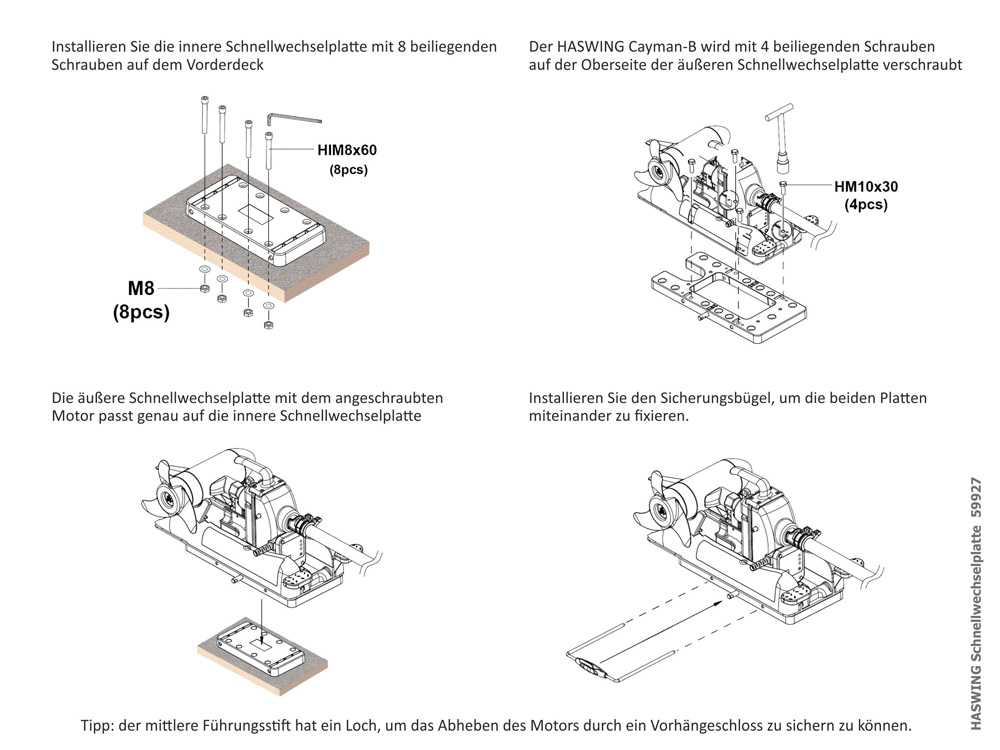 Einfaches Montieren des Motors durch vorgefertigte Bohrungen. Man kann mit